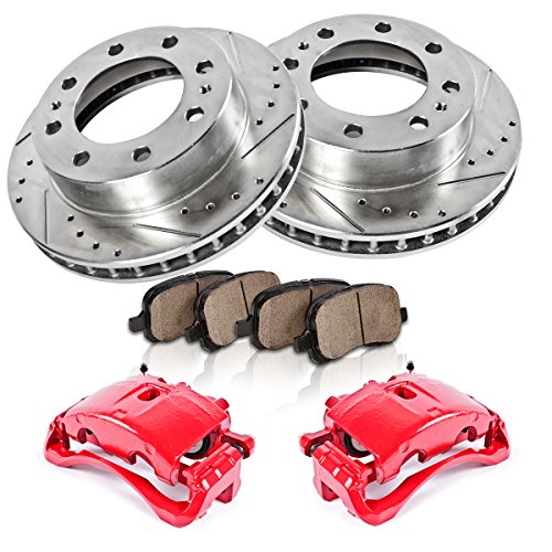 FRONT Powder Coated Red [2] Calipers + [2] Rotors + Quiet Low Dust [4] Ceramic Pads Performance Kit