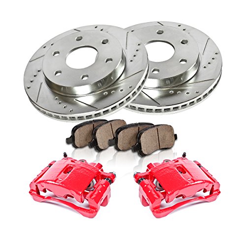 FRONT Powder Coated Red [2] Calipers + [2] Rotors + Quiet Low Dust [4] Ceramic Pads Performance Kit