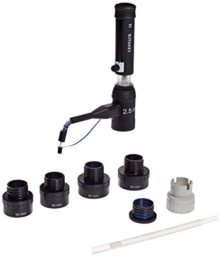 United Scientific BTDR-1 PTFE/Borosilicate Glass Bottle Top Dispenser, 0.25-2.5ml Volume Range, 0.05ml Increment