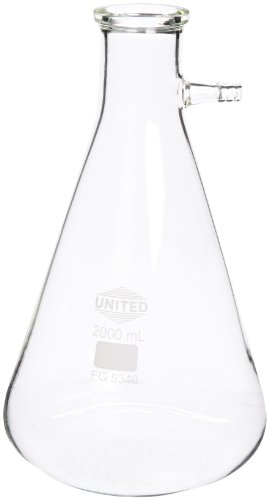 United Scientific FG5340-2000 Borosilicate Glass Heavy Wall Filtering Flask, Bolt Neck with Tubulation, 2000ml Capacity