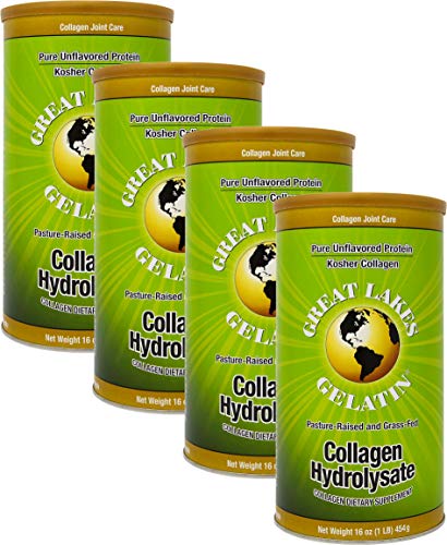 Great Lakes Gelatin, Collagen Hydrolysate, Unflavored Beef Protein, Kosher, 16 Oz Cans (Pack of 4)