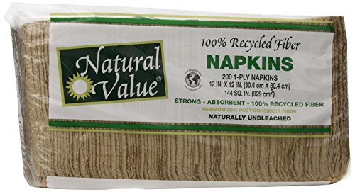 Natural Value 100% Recycled Fiber 1 Ply Napkins, 200 Count