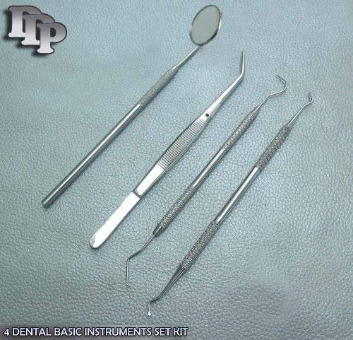 4 PIECES DENTAL BASIC INSTRUMENT SET KIT: MIRROR, PLIER, EXPLORER, EXCAVATOR DDP