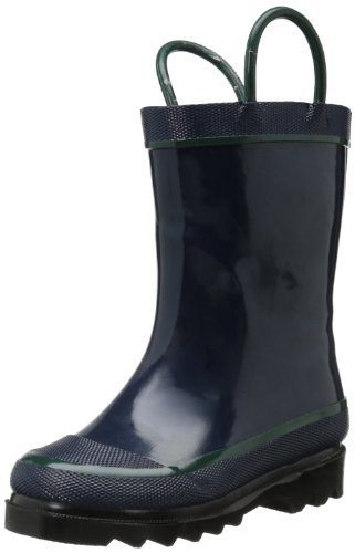 Western Chief Kids Waterproof Rubber Classic Rain Boot with Pull Handles, Navy, 8 M US Toddler