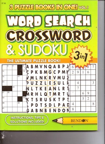 3 in 1 Word Search, Crossword & Sudoku (3 Puzzle Books in One) 192 Pages