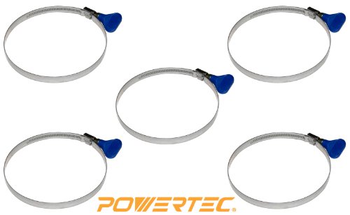 POWERTEC 70127 2-1/2 Inch Key Hose Clamp | Stainless Steel 2.5” Thumb Screw Dust Collector Hose Clamps – 5 Pack