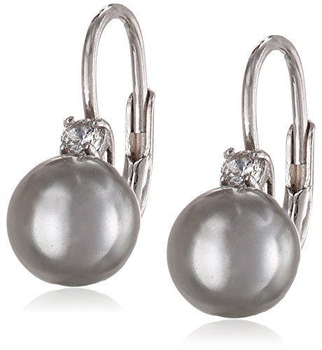 Sterling Silver Simulated Shell Pearl and Cubic Zirconia Leverback Earrings (8mm)