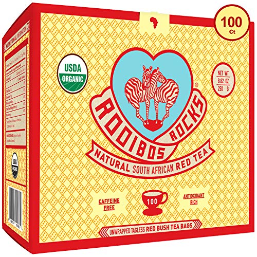 Rooibos Tea Organic Tagless Teabags - 100 Non GMO Naturally Caffeine Free South African Red Bush Herbal Tea Bags By Rooibos Rocks - USDA Organic Rooibos Teas, A Taste of Africa - Feel the Goodness