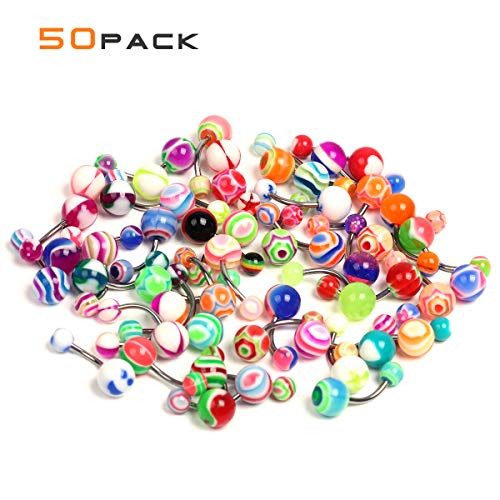 CrazyPiercing Wholesale Lot of 50pcs Belly Navel Button Rings Bar Barbells Ball Acrylic Steel