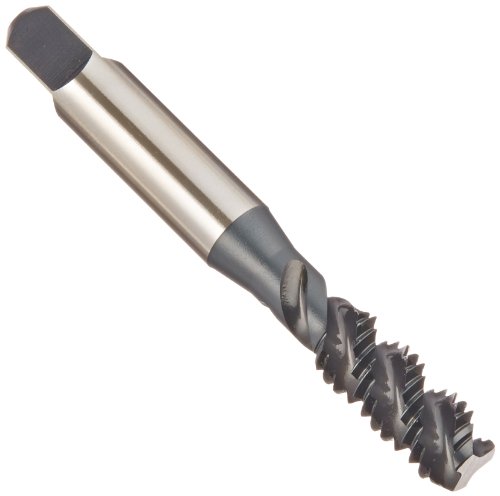 YG-1 F4 Series Vanadium Alloy HSS Spiral Flute Tap, Steam Oxide, Round Shank with Square End, Bottoming Chamfer, 3/8"-16 Thread Size, H3 Tolerance