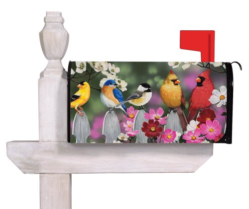 Evergreen Flag Picket Fence Bird Friends Magnetic Mailbox Cover - 18”W x 24”H