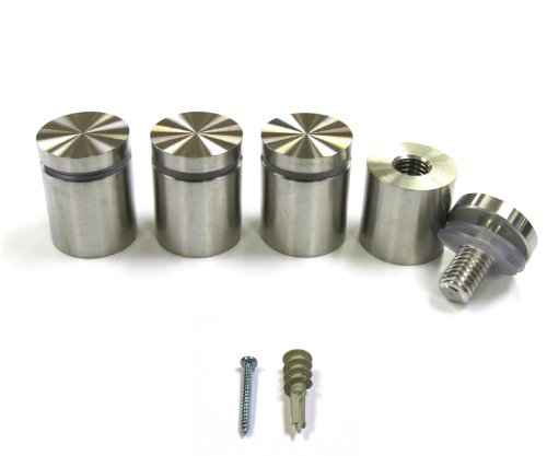 Set of 4-1" Dia. x 1" L. Solid Stainless Steel Sign Standoffs, Satin Brushed Finish; Architectural Quality; Project Your Pictures, Graphics and Other Signage Out from Wall.