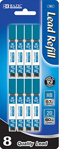BAZIC 20 Ct. Mechanical Pencil Leads. 0.7 mm Lead Refill for Automatic Pencils (8/pack)