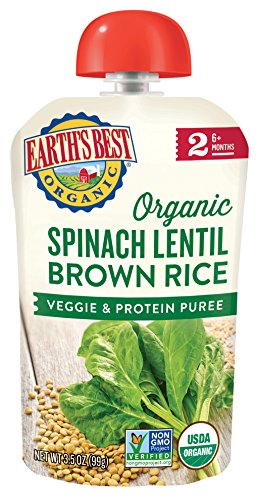 Earth's Best Organic Stage 2 Baby Food, Spinach Lentil and Brown Rice, 3.5 oz. Pouch (Pack of 12)