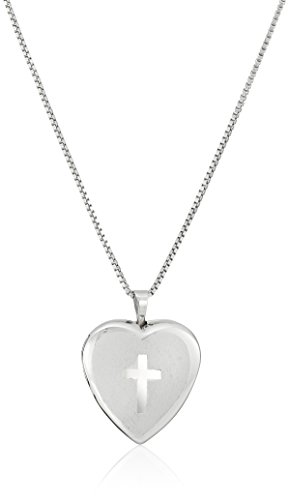 Sterling Silver with Etched Cross Heart Locket Necklace, 18"