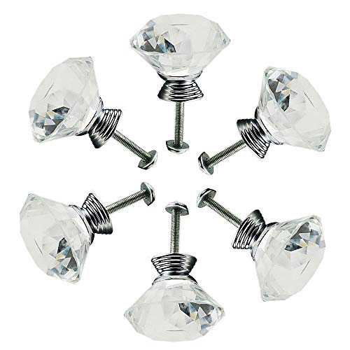 HiMo 6PCs Diameter 40mm Clear Crystal Glass Cabinet Knob Cupboard Drawer Pull Handle, Come with 3 kinds of Screws