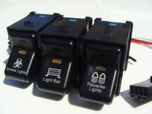 Jeep TJ Rocker Switch 3 Switch Kit- Zombie Lights Logo, Light Bar Logo, Reverse Lights Logo