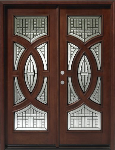 Solid Wood Mahogany Front Double Door Unit Pre-hung &Finished DMH7588-5-GL18, Patina, LH, 5/0X6/8 HIGHEST QUALITY