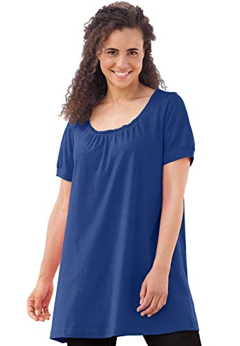 Woman Within Women's Plus Size Perfect Shirred U-Neck Tunic - Dark Sapphire, 1X