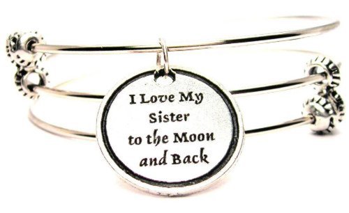 I Love My Sister To The Moon and Back Expandable Triple Wire Adjustable Bracelet Made In The USA