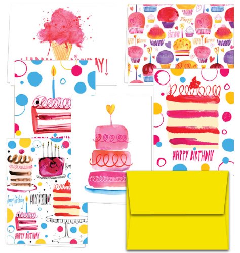 Perfectly Painted Birthday - 36 Birthday Cards - 6 Designs - Blank Cards - Yellow Envelopes Included