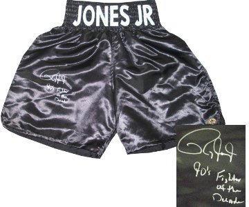 Roy Jones, Jr. signed Black Satin Boxing Trunks 90's Fighter of the Decade