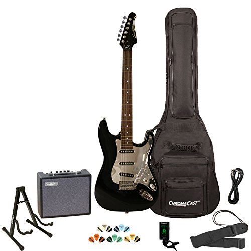 Sawtooth ST-ES-BKC-KIT-3 Black Electric Guitar with Chrome Pickguard - Includes Accessories, Amp, Gig Bag and Online Lesson