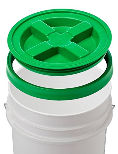 5 Gallon White Bucket & Gamma Seal Lid - Food Grade Plastic Pail & Gamma2 Screw Seal Tight Lid (Green)