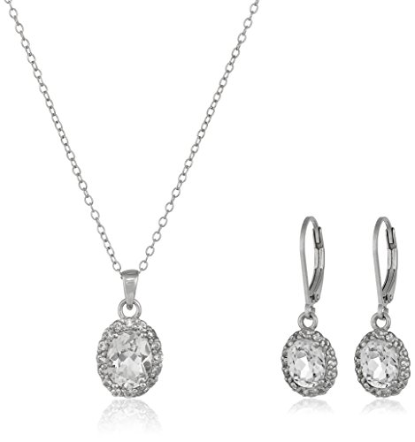 Sterling Silver and Gemstone Pendant Necklace and Earrings Jewelry Set