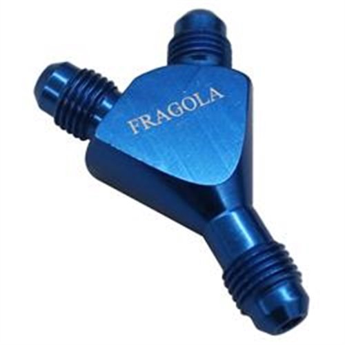 Fragola Aluminum AN Y Fittings, -6 AN Inlet x -6 AN Outlets - Blue