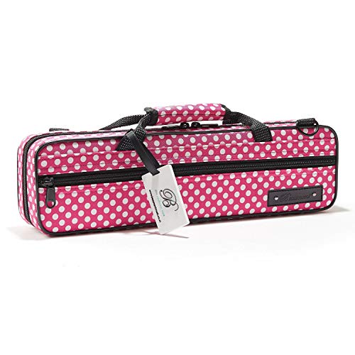Beaumont "Pink Polka Dot" Flute Case With Shoulder Strap - C-Foot Flute Hard Case Cover - Lightweight Canvas C Case for Yamaha, Jupiter, Trevor James Flute Instrument Case