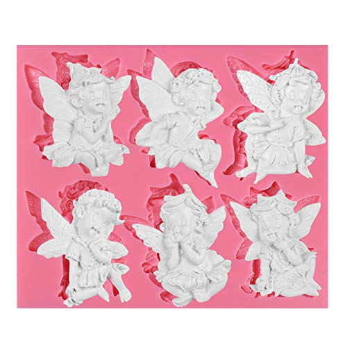 Funshowcase Large 6 Holes Fairy Angel Baby, Angelic Cherub with Wings Silicone Mold for Cake Decoration