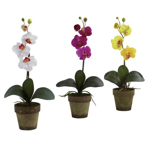 Nearly Natural 4065-AS-S3 Potted Phalaenopsis, Multicolored/White/Lavender/Yellow, Set of 3