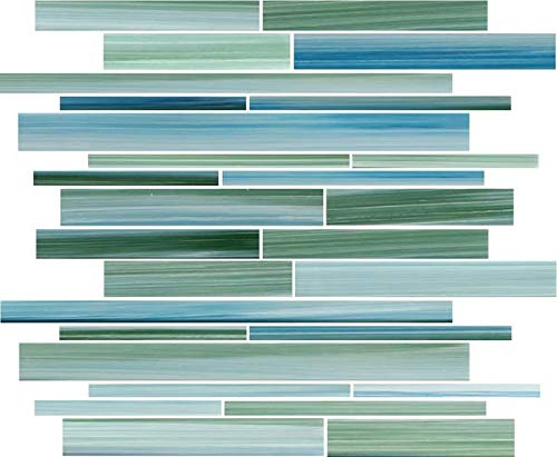 4" x 6" Sample - Rip Curl Green and Blue Hand Painted Linear Glass Mosaic Tiles