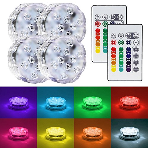 TORCHSTAR Set of 4 LED Submersible Light Battery Operated RGB Color Changing Accent Light w/ 2 x IR Remote for Party, Wedding, Holiday Lighting