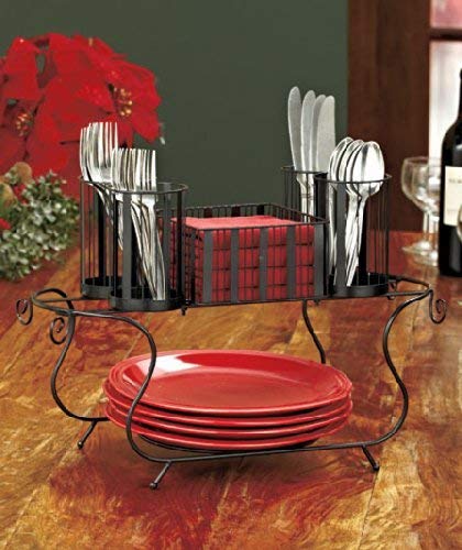 BUFFET UTENSILS CADDY - Durable & Easy to Serve Black Silverware Metal Frame Caddies for Holding Plates, Cutlery, Napkins & Cups for Eating & Serving Food | Perfect for Breakfast, Lunch and Dinner
