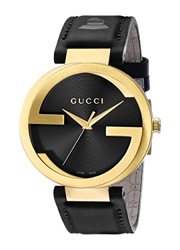 Gucci Interlocking Grammy Special Edition Analog Swiss Quartz Black Genuine Leather Men's Watch(Model:YA133208)