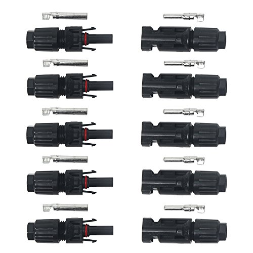 Signstek 5 Pack MC4 Male Female Solar Panel Cable Connector - Double Seal Rings