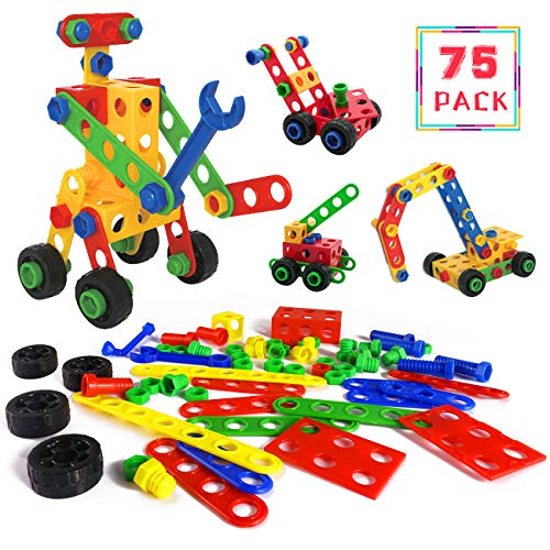HALOFUN 75PCS STEM Toys Kit, Educational Construction Engineering Building Blocks Learning Set for Boys & Girls