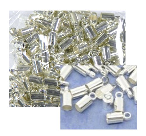 Rockin Beads Brand, Silver Plated Necklace Cord End Tip Beads Caps W/loop 9x4mm(fit 3mm Cord), Sold Per Pack of 200
