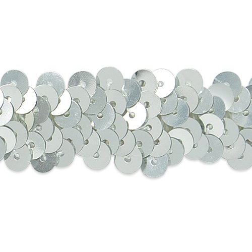 Expo International 2-Row 7/8-Inch Metallic Stretch Sequin Trim, 20-Yard, Silver