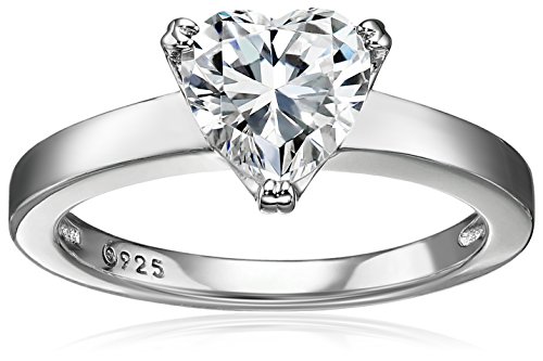 Plated Sterling Silver Swarovski Zirconia Heart Shape Solitaire Ring (1.5 cttw)