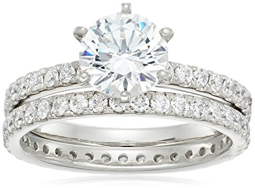 Platinum-Plated Sterling Silver Swarovski Zirconia Ring Set