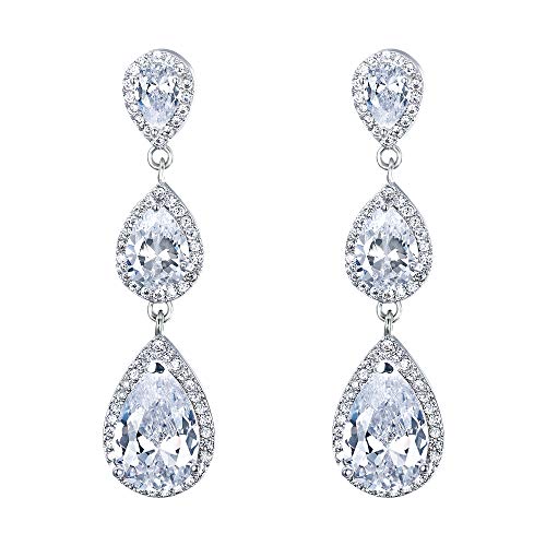 EVER FAITH Bridal Silver-Tone 3 CZ Teardrop Dangle Earrings Clear Austrian Crystals