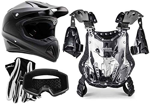 Adult Offroad Helmet Goggles Gloves Chest Protector GEAR COMBO Motocross ATV Dirt Bike MATTE BLACK (Medium)