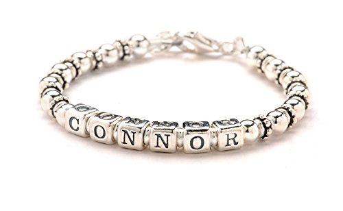 Lily Brooke Boys Christening Baptism Name Bracelet, Sterling Silver Beads & Cross Charm