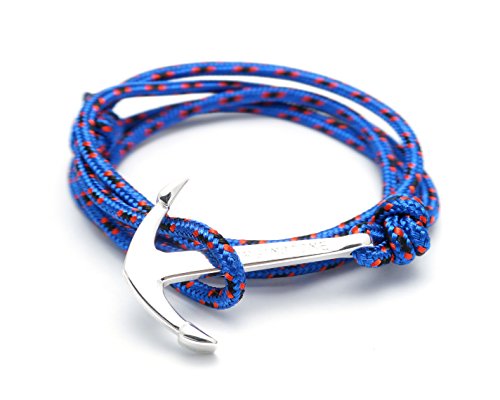 VIRGINSTONE Silver Anchor Bracelets on Colorful Nylon Ropes
