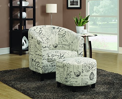 2-Piece Accent Chair and Ottoman in French Script Pattern Off White