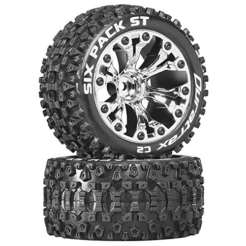 Duratrax DTXC3563 Six Pack RC Staduim Truck Tires with Foam Inserts, C2 Soft Compound, ST 2.8" Mounted on 1/2" Offset Chrome Wheels (2 Tires)