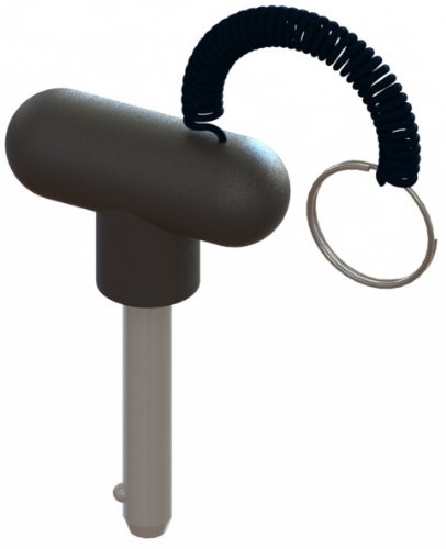 Innovative Components AN6X2500TR6DL21 2.25" Rounded T Knob w/ 3/8" diameter X 2-1/8" effective length detent pin steel zinc w/ attached lanyard